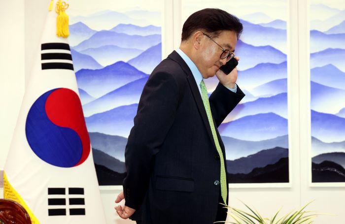 박태서 국회의장 공보수석은 이날 오전 국회 본청에서 기자들과 만나 "어제 오늘 전개되는 상황을 예의주시하고 있다"며 이처럼 설명했다.