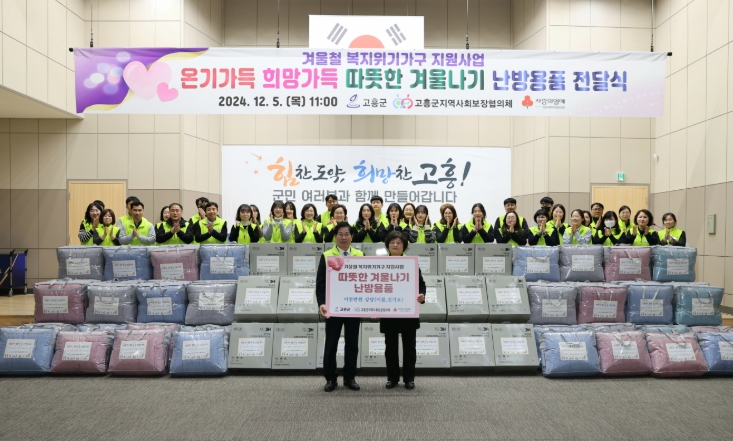 군 관계자는 “취약계층이 따뜻한 겨울을 보낼 수 있도록 조금이나마 도움이 되길 바란다”며, “앞으로도 민관이 협력해 지역 내 소외받는 군민이 없도록 최선을 다하겠다”고 말했다.