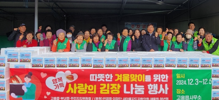 이번 행사는 고흥읍 주민자치위원회(위원장 고명준)와 새마을부녀회(회장 이점남)가 공동으로 주관했으며, 배추 800포기로 담근 김장 김치를 마을 경로당 43개소와 지역의 어려운 이웃 300여 가구에 전달해 따뜻한 마음을 나누기 위해 마련됐다.
