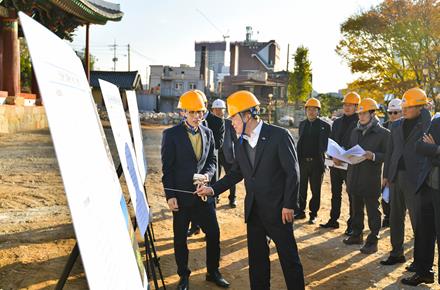 이날 정 시장은 사업 추진부서인 문화유산과와 현장소장으로부터 진남관 보수·정비 상항을 보고받고, 재개관 준비를 위한 마무리 작업에 철저를 기할 것을 주문했다.
