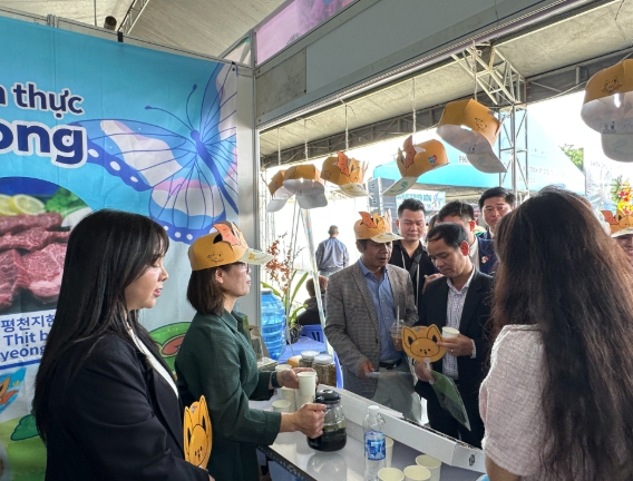 부스가 마련된 달랏꽃축제는 베트남 람동성 달랏시에서 열리는 대표적인 꽃 축제로, 홍보부스에서 방문객들은 국화차 시음 체험을 통해 함평 대표 농산물인 국화의 우수성을 직접 느낄 수 있다.