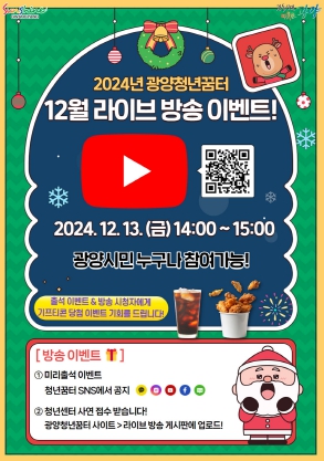 이번 라이브 방송은 오는 12월 13일 오후 2시부터 3시까지 광양청년꿈터 유튜브를 통해 진행된다.
