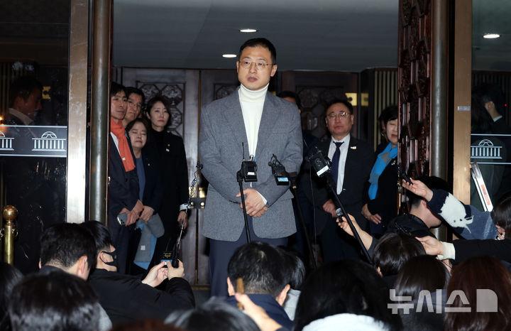 이어 "우리 여당에도 진지한 잘못 인정과 대통령 탄핵 협조를 요구한다"면서 "반헌법적 반민주적 비상계엄을 기획한 대통령에 대한 차회 탄핵표결에 찬성한다"고 덧붙였다.