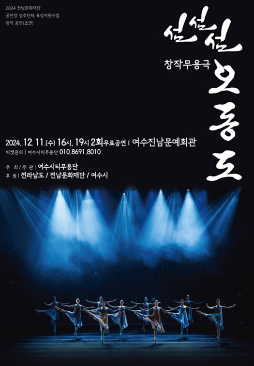 ‘섬, 섬, 섬 오동도’는 여수의 대표 명소인 오동도에 담긴 전설과 설화를 재해석한 창작무용극으로, 자연과 역사를 발레 언어로 표현해 지역의 문화적 정체성을 새롭게 조명한다.
