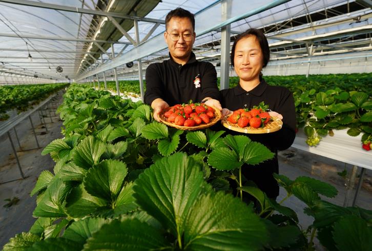 특히 고설베드, 차광, 양액 공급시스템 등을 갖춘 스마트팜 시설과 현대화된 수경재배를 통해 고품질 딸기를 생산하고 있다.