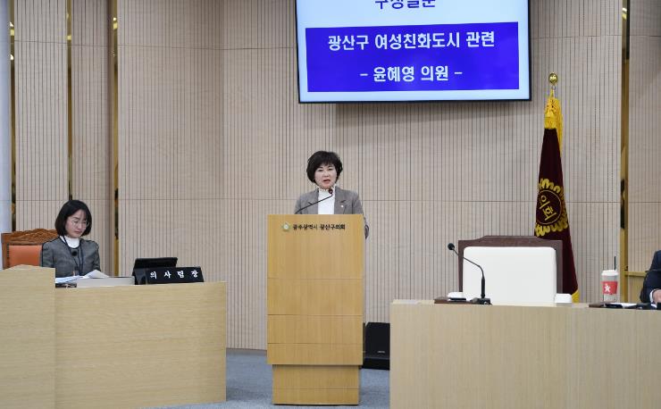 윤혜영 의원은 “광산구는 2012년부터 10여 년간 여성친화도시로 세 번째 지정되며 지속적인 여성정책을 펼쳐왔다”며 “성평등 인식, 여성 안전, 돌봄환경 조성 등 분야에서 의미 있는 성과도 거뒀지만 미흡한 점과 한계점도 노출되었다”고 말했다.