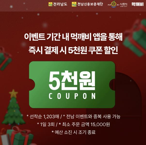 먹깨비는 나주사랑카드로 결제할 수 있다. 충전 시 10%선할인 혜택을 받을 수 있다는 점에서 이번 크리스마스 이벤트를 더하면 소비자가 누리는 혜택은 더욱 크다.