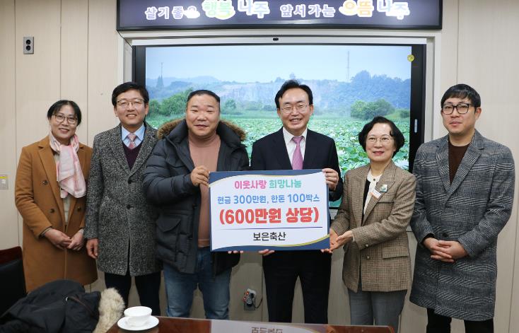 이번 후원은 평소 어려운 이웃을 위한 나눔 활동을 꾸준히 지속해 온 보은축산과 인연이 있는 나주발전시민연대 조충권 회장의 연계를 통해 이뤄졌다.