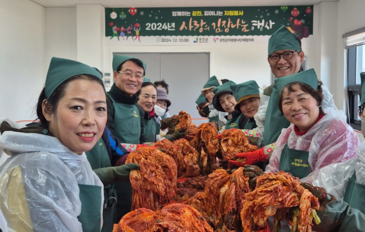 이날 행사에는 읍·면 취약계층과 사회복지시설에 총 1,004포기(천사포기)의 김장이 전달돼 강진지역의 이웃들에게 온정을 전하고, 자원봉사자들의 헌신과 협력으로 이뤄진 뜻깊은 행사였다.