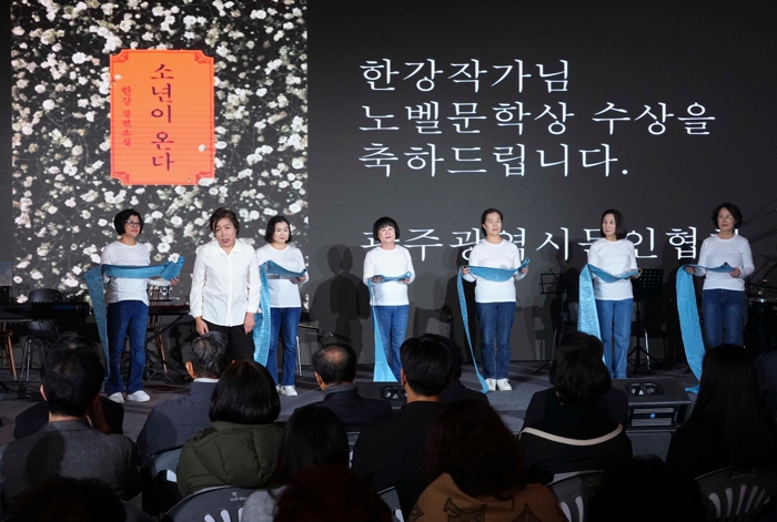 광주광역시는 한강 작가의 노벨상 시상식에 맞춰 10일 밤 8시부터 11일 새벽 1시까지 ‘한강 작가 노벨문학상 수상 기념 시민 축하행사’를 시청 시민홀에서 개최했다.
