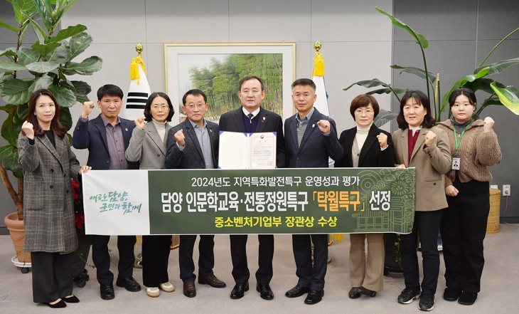 담양군에 따르면 최근 중소벤처기업부가 주최해 전국 181개 특구 대상으로 실시한 2024년도(‘23년 실적) 지역특구 운영성과 평가에서 담양 인문학교육·전통정원 특구가 탁월특구에 선정됐다고 밝혔다.