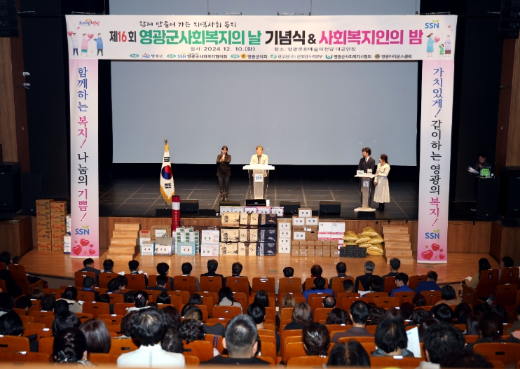 이날 행사는‘함께하는 복지! 나눔의 기쁨! 가치있게! 같이하는 영광의 복지!’슬로건을 중심으로 사회복지 가치와 중요성을 널리 알리고, 종사자에 대한 노고를 격려하는 등 영광군 사회 복지에 대한 관심을 높이기 위해 마련됐으며 사회복지 증진에 기여한 공로를 인정받은 종사자 및 관계자 19명에게 군수 표창, 2명에게 감사패를 수여했다.