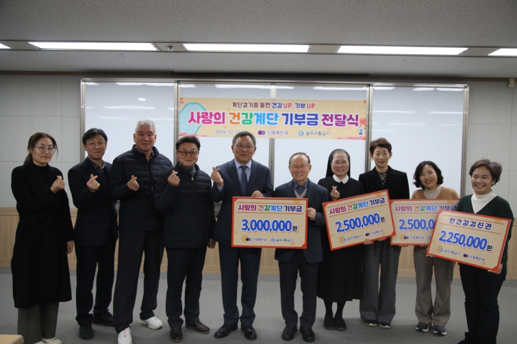‘사랑의 건강계단’은 지난 2015년 신세계안과의 후원으로 상무역 4번출구에 조성됐으며, 시민들이 이 계단을 1회 이용할 때마다 10원씩 후원금이 적립된다. 공사는 지금까지 사랑의 건강계단 운영을 통해 총 5,300만여원의 기금과 1,275만여원의 안건강검진권을 취약계층에 전달하며 지역사회에 온기를 전파했다.