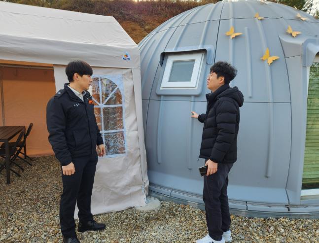 이번 점검의 주요 내용은 ▲관계자 화재예방컨설팅 ▲소화기, 감지기, 손전등 적정 비치 확인 ▲화재 시 피난로 확보 ▲방염 천막 사용 지도 ▲이용객 안전용품 대여 독려 등이다.