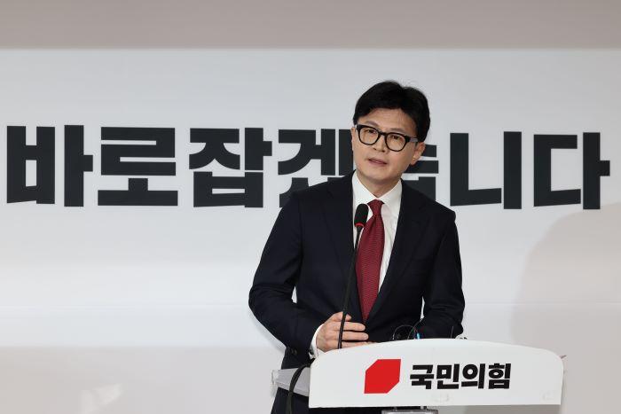 한 대표는 이날 서울 여의도 국회에서 기자회견을 열고 "최근 대통령이 우리 당의 요구와 본인의 일임에 따라 논의 중인 조기 퇴진에 응할 생각이 없다는 것을 확인했다"며 "당 대표로서 말씀드린다. 대통령은 군 통수권을 비롯한 국정 운영에서 즉각 배제돼야 한다"고 말했다.