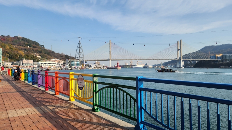 시는 안전성 확보를 위해 종포해양공원과 하멜등대 방면 970m(485경간) 난간을 무지개색으로 도색, 주변 경관과 어울리게 개선하고 시인성을 높였다.