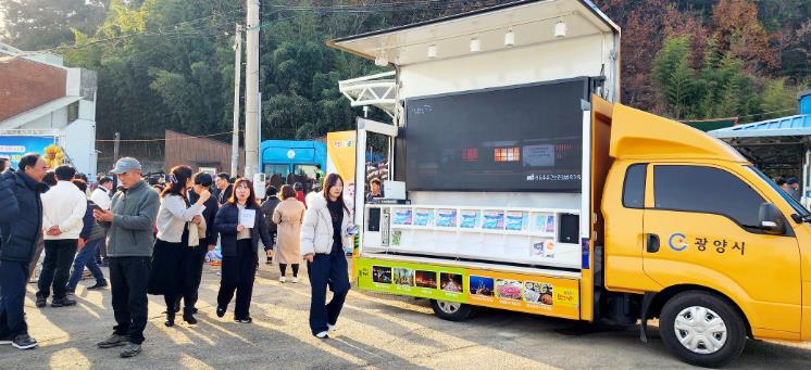 광양시 이동형관광안내소는 따스한 햇살의 느낌을 살린 노란색 차량에 광양관광 이미지를 랩핑하고 홍보영상 스크린과 리플릿 비치 기능을 도입한 움직이는 관광안내소다.