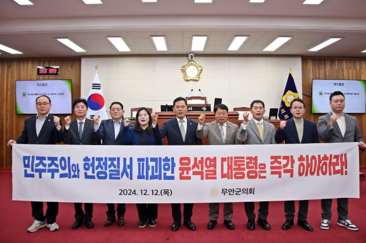 무안군의회는 비상계엄령은 전시・사변 및 이에 준하는 국가적 비상사태의 경우에 불가피하게 발동할 수 있으나 이번 윤석열 대통령의 비상계엄령 선포는 헌법이 정한 절차와 요건을 위반하고 심지어 계엄군을 동원해 국회를 무력화하려는 위헌적 친위 쿠데타를 자행했다고 강도 높게 비판했다.