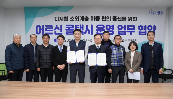 광주광역시는 12일 광주빛고을콜택시와 ‘어르신 콜택시 운영 업무협약’을 체결했다.