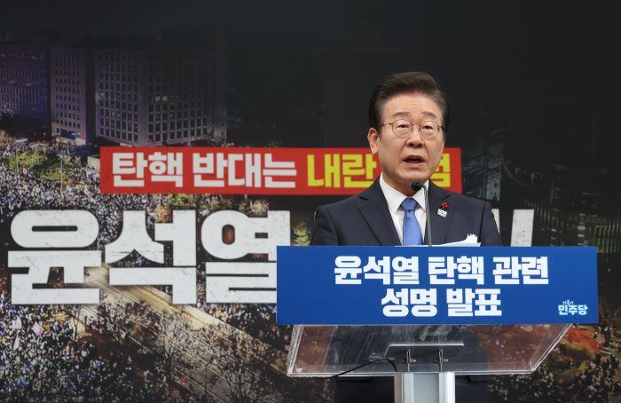 이 대표는 13일 특별성명을 내고 "국민의 명령은 초지일관 한결같고 또 분명하다"며 "'내란수괴' 윤석열은 지금 당장 물러나라는 것이다. 나라의 주인인 국민에게 총칼을 들이댄 권력자는 단 1분 1초도 국민을 섬기는 1호 머슴 대통령의 자리에 앉아 있어선 안 된다는 것"이라고 말했다.