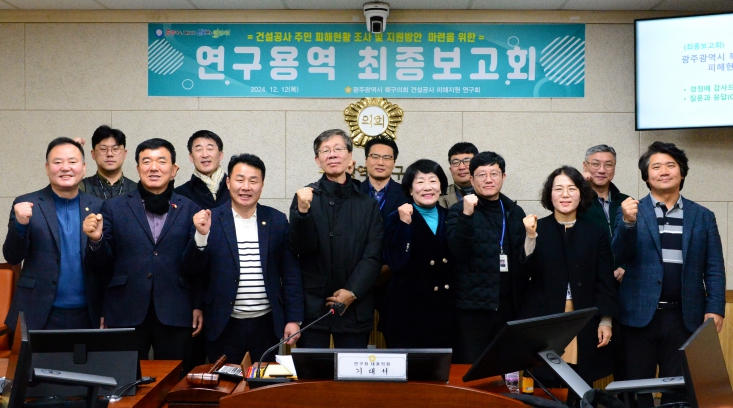 ‘건설공사 피해지원 연구회’는 북구 관내 건설공사 중 발생되는 소음·진동으로 인한 주민 피해 현황을 진단하고 합리적인 주민 지원 방안을 마련하고자 주민‧부서간담회, 주민공청회, 용역 착수보고회, 중간보고회 등을 추진하며 활발한 연구활동을 이어왔다.