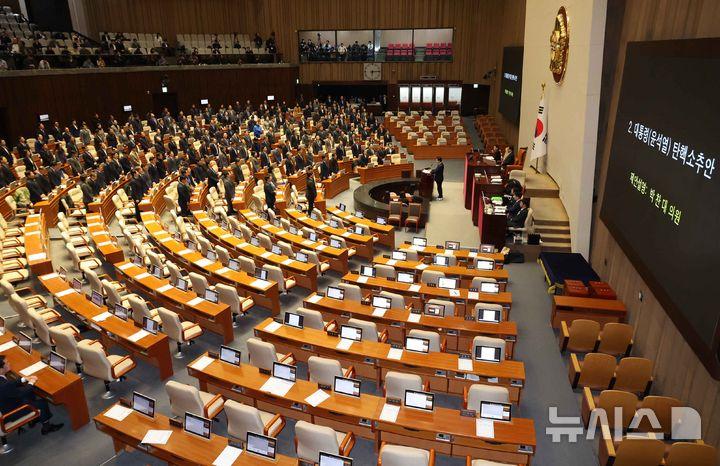 이날 오후 열린 본회의에서 정명호 의사국장은 야6당이 전날 발의한 윤 대통령 탄핵안을 보고했다.