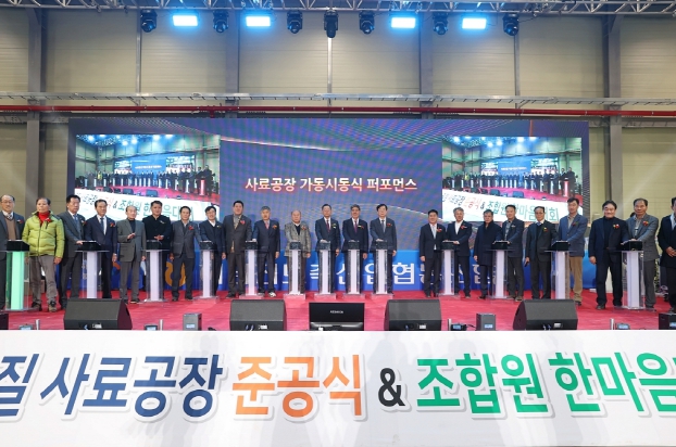 13일 준공식을 가진 사료공장은 지난 2022년 농림축산식품부 조사료 가공유통시설 공모사업에 선정되어 총사업비 88억 2,900만원(자부담 70억 2,900만원, 기금 및 군비 18억원)을 투입, 연면적 3,928㎡ 규모로 건립됐다.