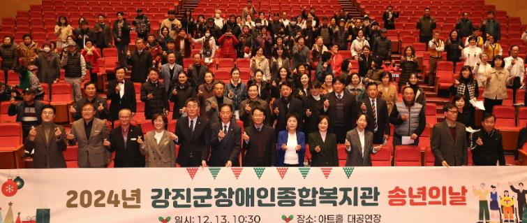 강진원 강진군수는 “장애인 가족들과 장애인 복지에 관심을 갖고 있는 지역의 리더들이 한자리에 모여 한 해를 마무리하는 장을 가질 수 있도록 준비한 장애인복지관장과 현장 종사자들의 노고에 깊이 감사드린다”며 “새해에도 약자복지 기반을 강화하고 장애인 복지 체감도를 더욱 향상시켜 나가겠다”고 말했다.