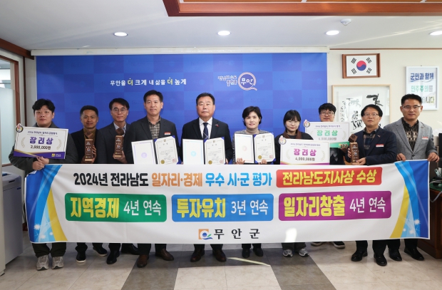 무안군은 이번 시상식에서 3개 분야 모두에서 장려상을 수상했으며, 특히 지역경제 활성화와 일자리창출 분야는 4년 연속, 투자유치 분야는 3연속 수상했다.