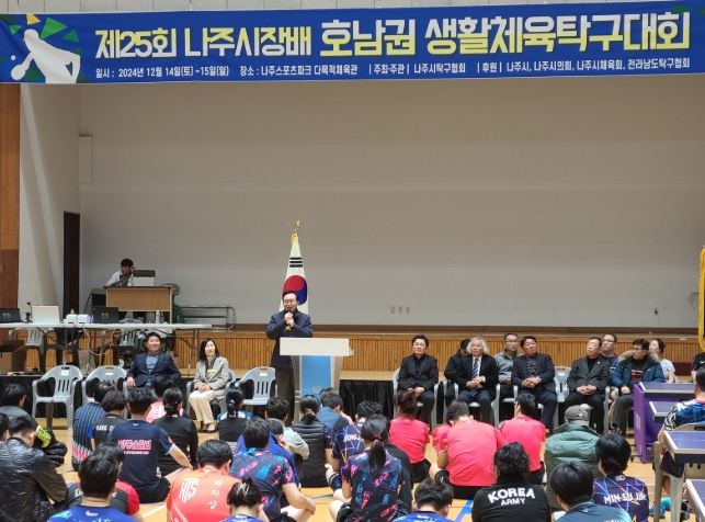 윤병태 나주시장은 “역사와 전통을 자랑하는 ‘제25회 호남권 생활체육 탁구대회’의 성공적 개최 축하한다”며, “앞으로도 지역경제 활성화 및 체육산업 육성을 위해 아낌없이 지원하겠다”고 밝혔다.