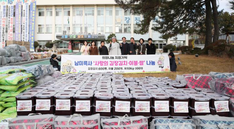 남미륵사는 지난 2020년부터 2023년까지 김장김치 2,480통, 이불 780채, 쌀 200포를 강진군에 기탁하며 지속적인 나눔을 실천, 소외된 이웃들에게 큰 힘이 됐다.
