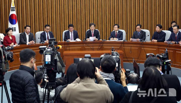 박찬대 더불어민주당 원내대표는 "국회에서 3명을 추천하면 대통령은 임명절차만 진행하는 것인데 대통령 직무정지 시 권한대행이 임명을 못한다는 것은 말장난에 불과하다"고 말했다.