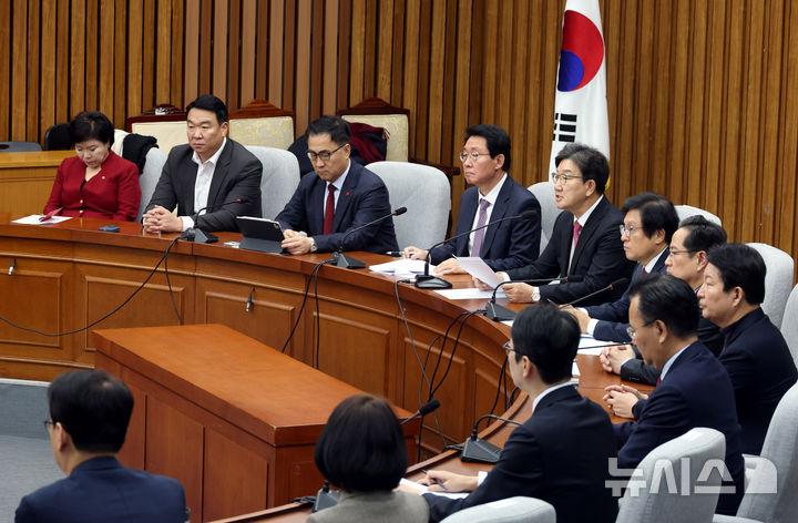 김상훈 국민의힘 정책위의장은 17일 오전 원내대책회의에서 "어제 주한미국상공회의소(암참)가 이재명 더불어민주당 대표를 만나 증감법 시행시 기업의 극비 정보가 새나갈 것이라며 우려를 표시했다"고 말했다.