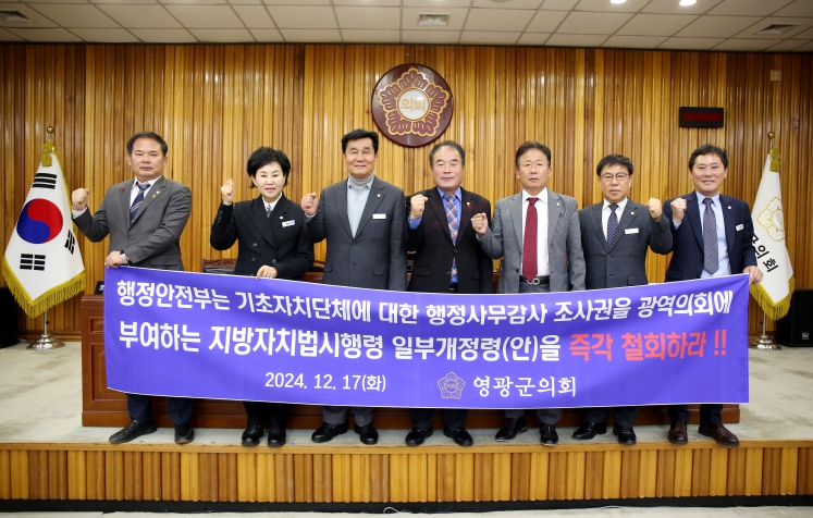 영광군의회는 성명서를 통해 “위임사무에 대한 기초의회의 행정사무감사는 행정기관의 권한과 책임을 일치시켜 행정의 효율성을 높이고, 지역주민의 목소리를 신속하게 반영하기 위한 중요한 수단이었다.”고 강조했다.