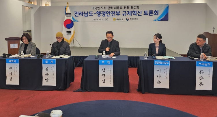 장헌범 전남도 기획조정실장은 “모든 규제도 하나의 제도인 만큼 토론회가 조금 더 살기좋은 사회를 만들기 위한 계기가 됐길 바란다”며 “내수 부진으로 민생경제에 어려움이 크다. 관광산업 활성화를 통한 소비 확대와 지역경제 활력 제고를 위한 관광 분야 규제 발굴 및 개선을 위해 앞으로도 많은 관심을 가져달라”고 당부했다.