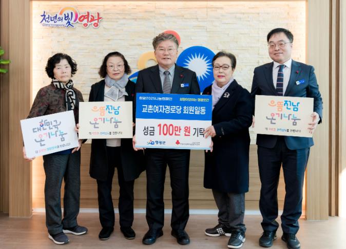 한편, 영광군 관계자는 “어려운 시기임에도 불구하고 군민을 생각하는 온정이 추운 겨울을 보내는 우리 모두에게 큰 힘이 될 것이며 기탁해 주신 성금은 도움의 손길이 필요한 곳에 소중하게 사용하겠다.”라고 전했다.
