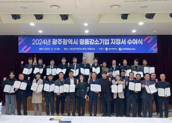 광주광역시는 지난 17일 광주테크노파크에서 ‘제13기 명품강소기업 지정서 수여식’을 개최했다.