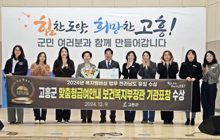 이번 표창은 지자체별 맞춤형 급여안내(복지멤버십) 운영 실적을 종합적으로 평가해 사회보장급여 수급자 발굴 및 복지 체감도 향상에 활발히 기여한 기관에 수여되는 상으로, 광역지자체 3개소와 기초지자체 3개소 중 고흥군이 전라남도에서 유일하게 수상했다.