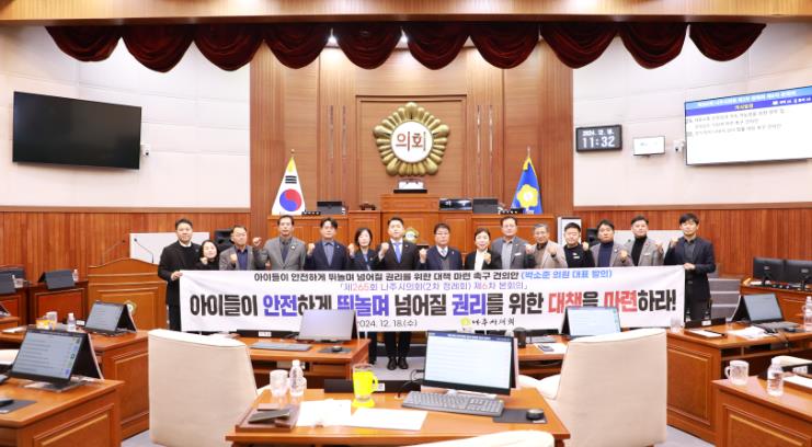 나주시의회는 건의안을 통해 ▲'어린이놀이시설 안전관리법'을 환경유해성 정기검사를 포함하도록 개정할 것과▲'환경보건법 시행령'에 규정된 어린이 활동공간에 대한 환경안전관리기준을 한국산업표준 기준에 부합하도록 개정할 것▲전라남도보건환경연구원은 도내 어린이 놀이시설 환경 유해성 검사항목 확대와 체계적 가이드라인을 마련할 것을 강력히 촉구했다.