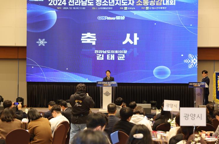 김태균 의장은 축사에서 “평상시 보지 못했던 젊은 열기와 열정의 모습을 보니 전남의 미래가 밝아 보인다. 희망이 넘치는 무안군에서 청소년지도자 공감대회를 개최하게 되어 뜻깊게 생각한다”며 “전남 청소년들이 꿈을 펼치며 올바르게 성장해 나갈수록 있도록 더 적극적으로 이끌어 주길 바란다”고 당부했다.