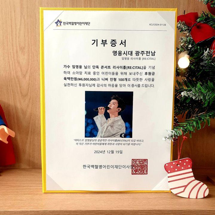 19일 한국백혈병어린이재단에 따르면, 팬클럽 영웅시대 광주전남은 백혈병어린이재단에 600만원을 기부했다.