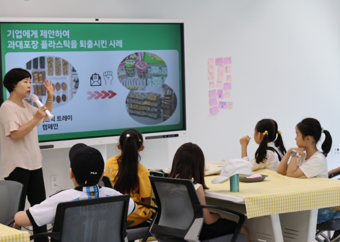 친환경자원순환센터에서 양성한 전문 환경교육 강사가 플라스틱, 패스트패션, 전자폐기물을 주제로 다양한 교육을 진행했으며, ‘노(NO) 플라스틱 천연수세미 만들기’, ‘자투리 천으로 명찰 만들기’, ‘전자폐기물 보드게임’ 등 다양한 체험을 운영, 자원 소비를 줄이고 폐기물을 최소화 할 수 있도록 도왔다.