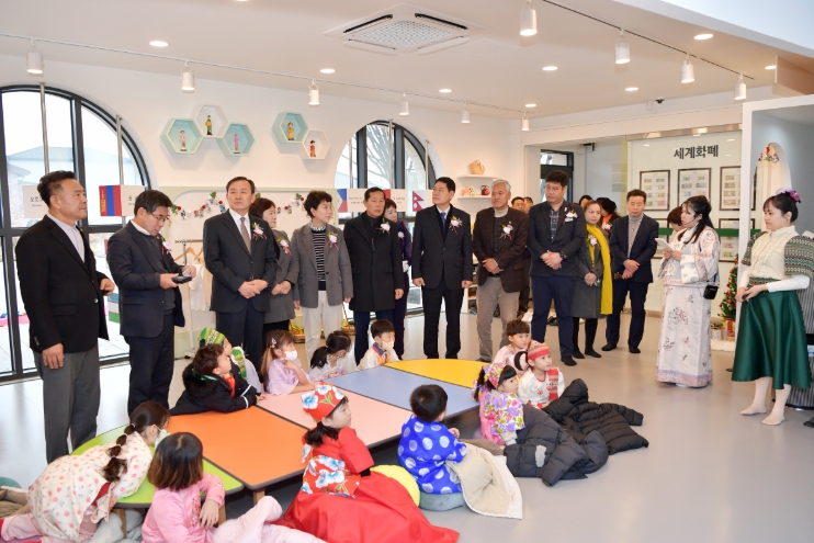 1층 다문화체험교실은 다양한 문화를 직접 체험하며 다문화에 대한 이해를 높일 수 있는 교육 공간이다. 관내 및 인근 지역 유치원·어린이집 및 초등학교 등과 연계해 교육프로그램을 진행할 계획이다.
