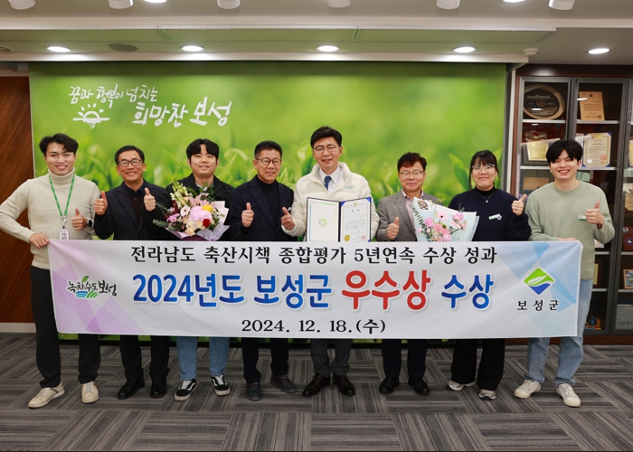 이로써 보성군은 2020년 최우수상, 2021년 대상, 2022년 우수상, 2023년 최우수상에 이어 5년 연속 수상이라는 성과와 함께 축산행정 우수성을 입증받았다.