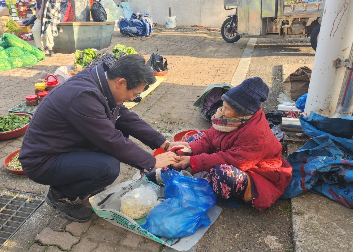 우승희 영암군수는 영암5일시장 각 매장을 돌며 지역민, 상인, 소상공인 등을 만나 경기 회복을 위해 영암군에서 생산된 상품부터 구매해 달라고 당부했다.