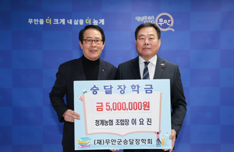 김산 군수는 “지역인재들이 마음껏 꿈을 펼칠 수 있도록 장학금을 기탁해주셔서 감사드린다”며 “귀한 뜻을 담아 전해주신 장학금은 더 나은 학업 환경을 조성하고 지역 학생들이 학업에 정진하여 무안군을 이끌어갈 미래 인재로 성장할 수 있도록 장학사업에 최선을 다하겠다”고 전했다.