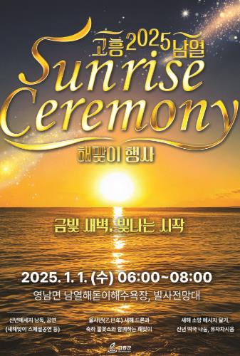 또한, 고흥군 전속예술단의 신명 나는 대북 공연과 2025 새해를 주제로 한 1,500대 규모의 드론쇼와 불꽃쇼가 펼쳐져 잊지 못할 새벽의 감동을 선사할 예정이다.