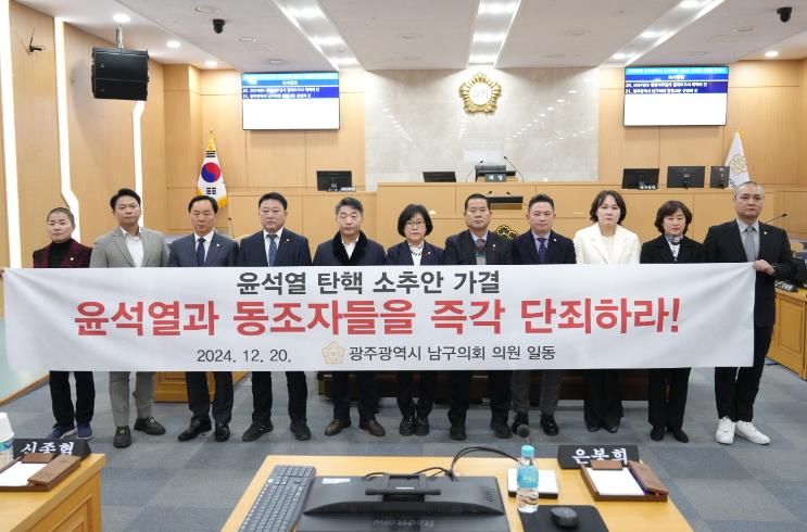 남구의회 의원들은 "헌법재판소가 국가의 명예와 민주주의를 바로 세우는 공정하고 정의로운 결정을 내리기를 바란다"고 덧붙이며, 내란 수괴 윤석열과 그 가담자들에 대한 엄정하고 철저한 수사가 이루어져야 한다고 밝혔다.