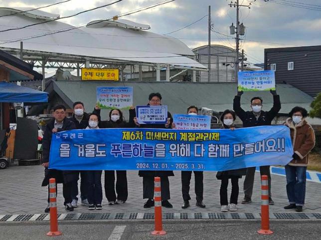 구례군 미세먼지 계절 관리제 주요 내용은 ▲공공기관 에너지 절감 ▲대기오염물질 배출사업장 불법행위 점검 ▲동절기 영농 폐기물 불법 소각 근절 ▲다중이용시설 실내 공기질 및 민감·취약계층 이용 시설 특별점검과 미세먼지 대응 요령 홍보 등이다.