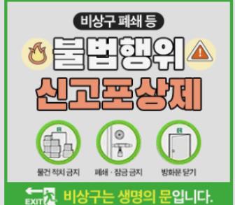 소방시설 불법행위 신고포상제는 비상구 등 소방시설에 가해지는 불법행위를 신고하는 경우 포상금을 지급하는 제도다.
